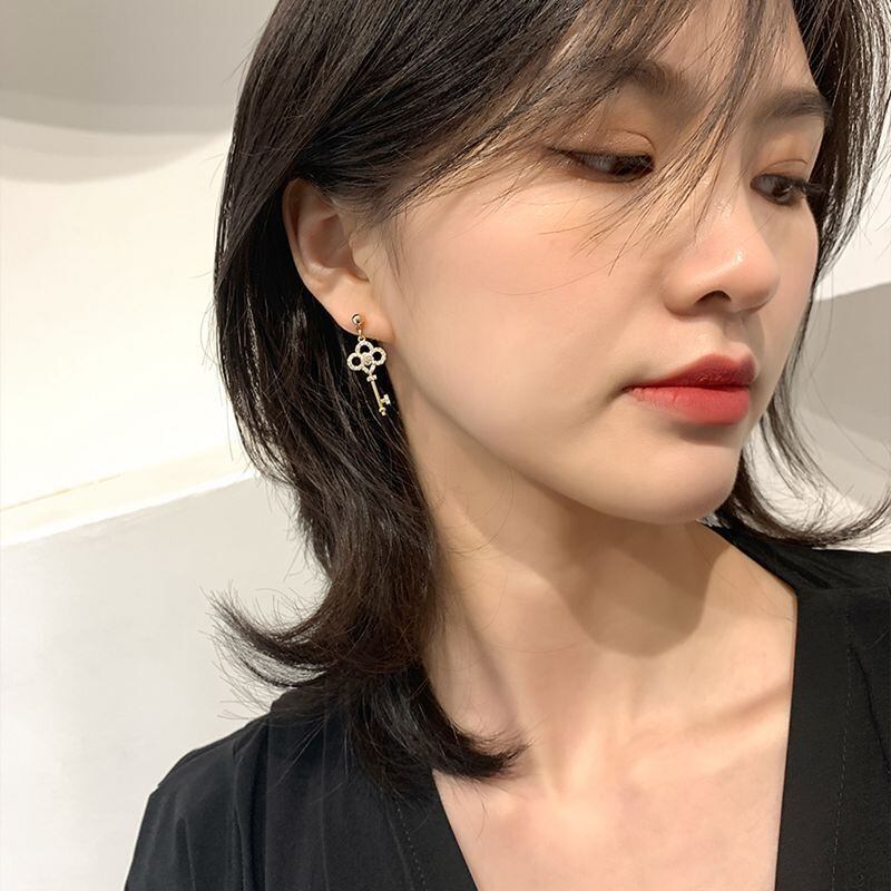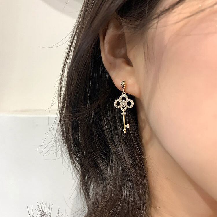 片側は愛らしいアンティークな鍵のデザイン。もう片側は女性らしいパールデザインが美しい耳元を演出してくれます。