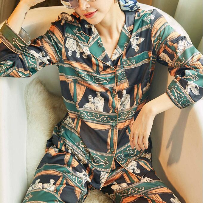異国風デザインで非日常な時間を 長袖レディースパジャマ上下セット