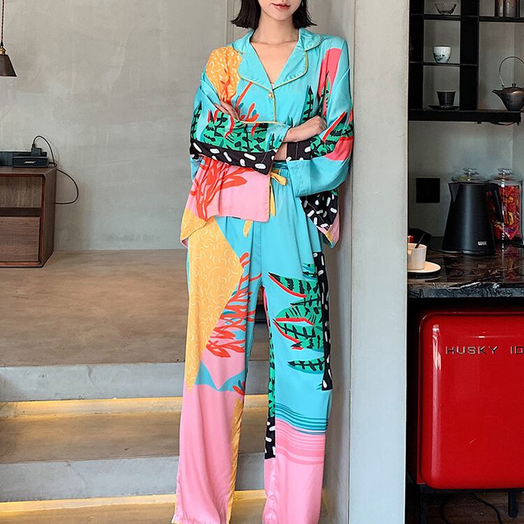高級アジアンリゾートが似合う、個性的な植物柄レディース長袖パジャマです。